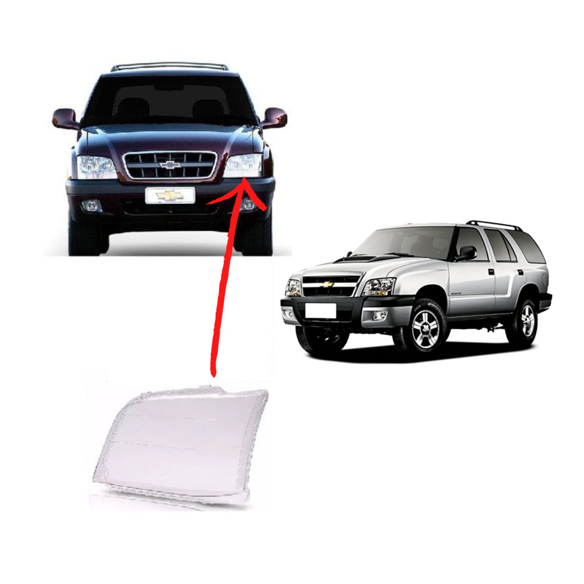 Lente do Farol Automotivo S10 Blazer 01 02 03 04 05 06 07 08 09 10 11 Lado Esquerdo ( Lado Motorista)